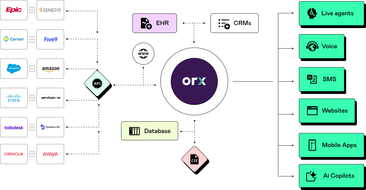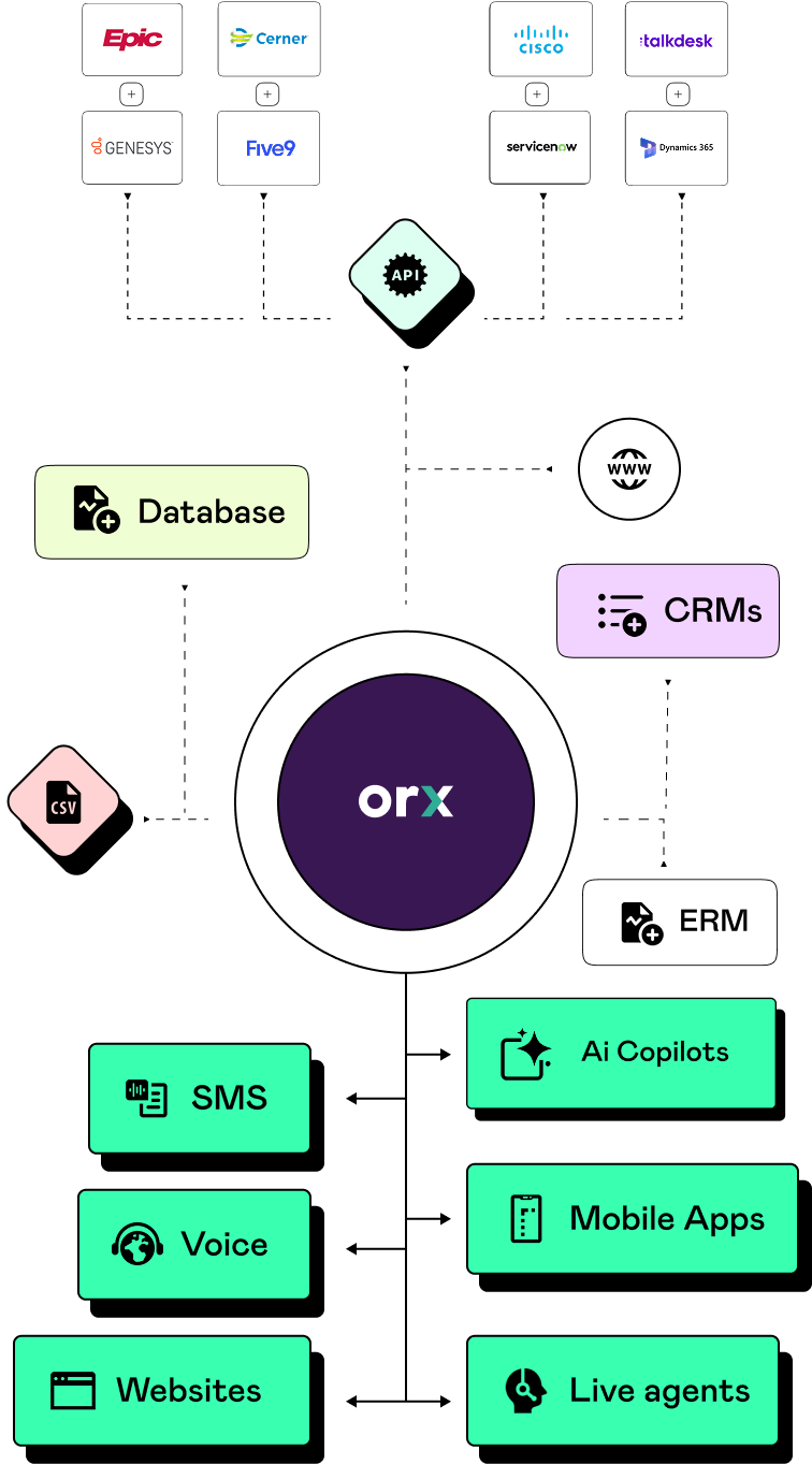Unlock the full potential of your systems with ORX Knowledge Base Intelligence. We generate knowledge bases that power the latest AI features in your CCaaS, CRM, and EHR platforms.